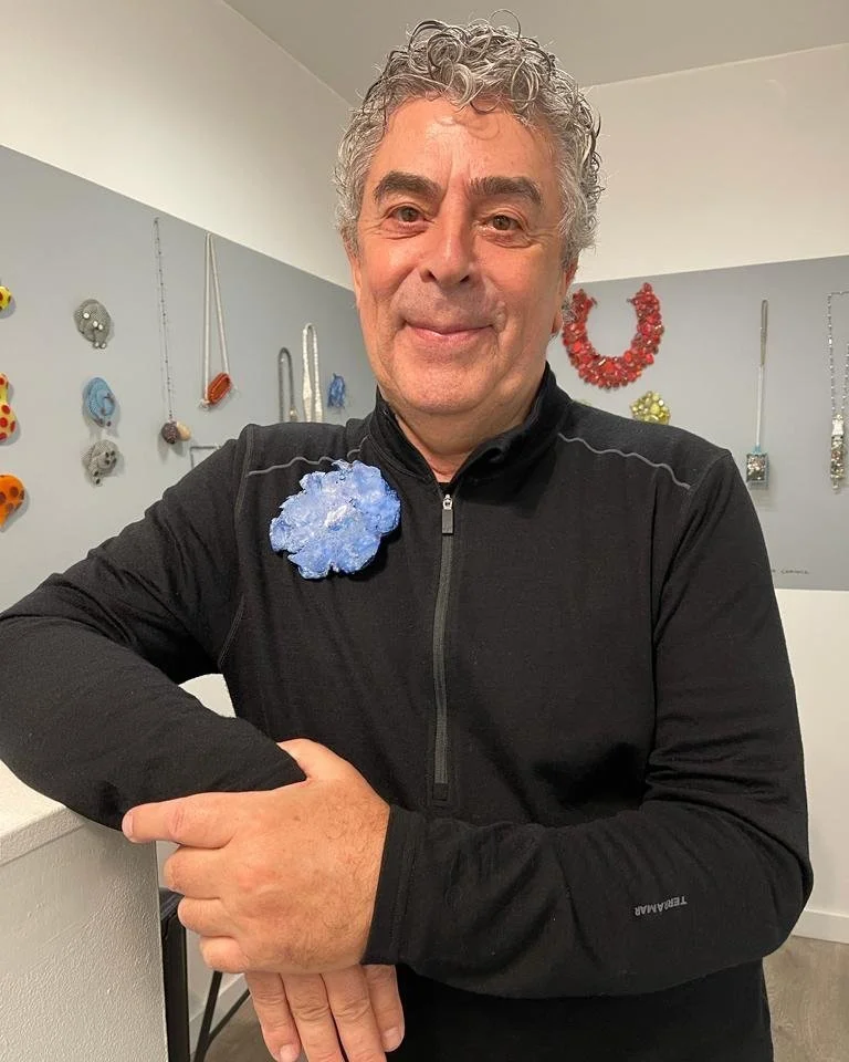 He has been the official bookseller of the SNAG ( Society of North American Goldsmiths ) for the past 30 years. He has juried Talente and Schmuckszene in Munich for many years as well as Joya Spain, Gioielli in Fermento Italy, Itami in Japan, Athens Jewelry Week Greece, Legnica Silver Festival, Cheongju International Craft Biennial Korea, Romania Jewelry Week, etc. For the past 25 years he has lectured on contemporary jewelry and gives master-classes to art students and professionals/makers in the USA, Europe, Australia, Asia and South America, His master class is based on the concept of encouraging artists/makers to work from their unique talent instead of relying on the more common route of commercial work that is often dictated by main-stream demand/taste. This involves insight in the often psychological and emotional barriers we consciously or unconsciously have put up within ourselves.