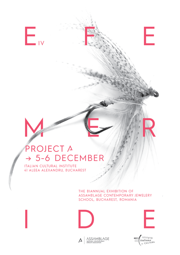 Ephemeral through self, ephemeral through art. “Efemeride” is a story about experiences, agreements, time, and emotions displayed through the means of contemporary jewelry. The theme of the exhibit had as a source of inspiration insects of the order Ephemeroptera, which have a one-day lifespan. Extrapolated to the jewelry level, the contrast between ephemeral and perennial becomes much more visible. Traditionally, jewelry is seen as a long-lasting object, an heirloom passed from one generation to the next, which keeps accumulating emotional and material traits. But what happens if we give jewelry an ephemeral characteristic? Can the conventional value of the material be replaced with a subjective value, derived from emotional experience?