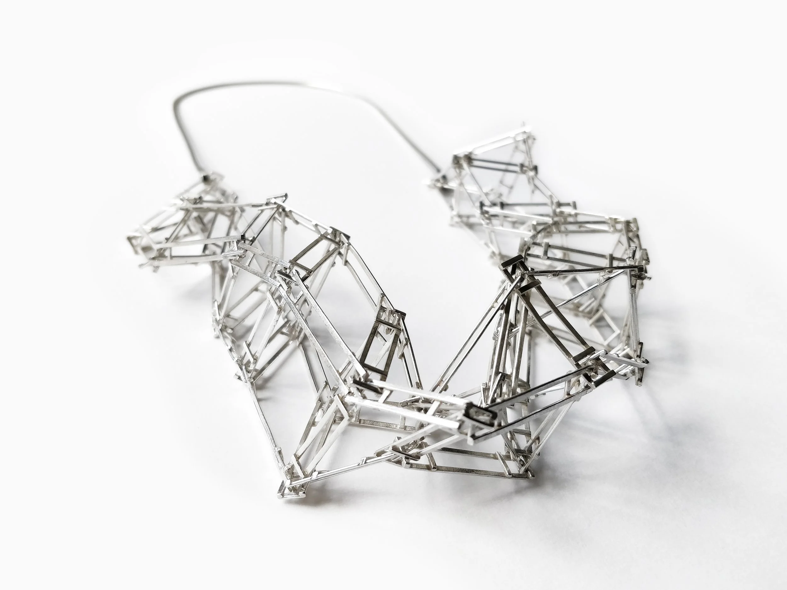 My work is related to time by the process of repeating and connecting small elements to build a unity. Mainly focuses on patterns through geometry, repetition and mobility/joints. Geometry as my vision, perception of spaces. Repetition as our everyday gestures. Mobility as an element of constant change. Concatenations, like the actions of our life. I like the production process through which I perceive time and self-knowledge. If I had to choose a concept, this would be lightheartedness.