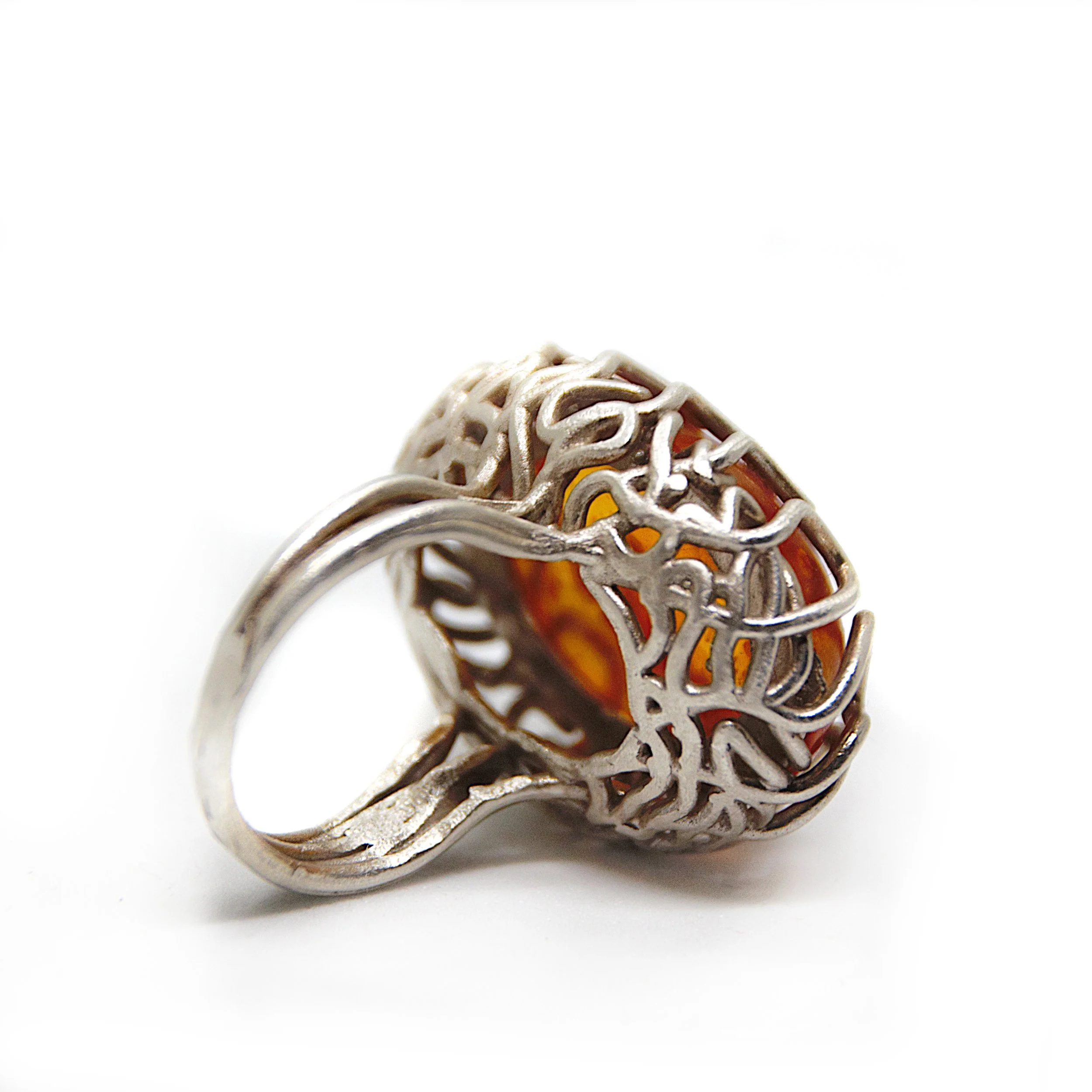 It all started with a cell. It grew, divided and specialized. As such this collection recalls that. Different forms record different stages or parts of the cell. The collection has a start point, the Nucleus and an end point - Embryo. Particular in this case is the fact that not only 3d printed techniques are used, but also natural materials are integrated via more traditional methods. There are walnut husks combined with metal but also natural amber trapped in digitally designed settings. Also nano particles which are actually a new medical technology, are made of silver, with or without Inclusions. Each piece has a story and you are invited to find it out.