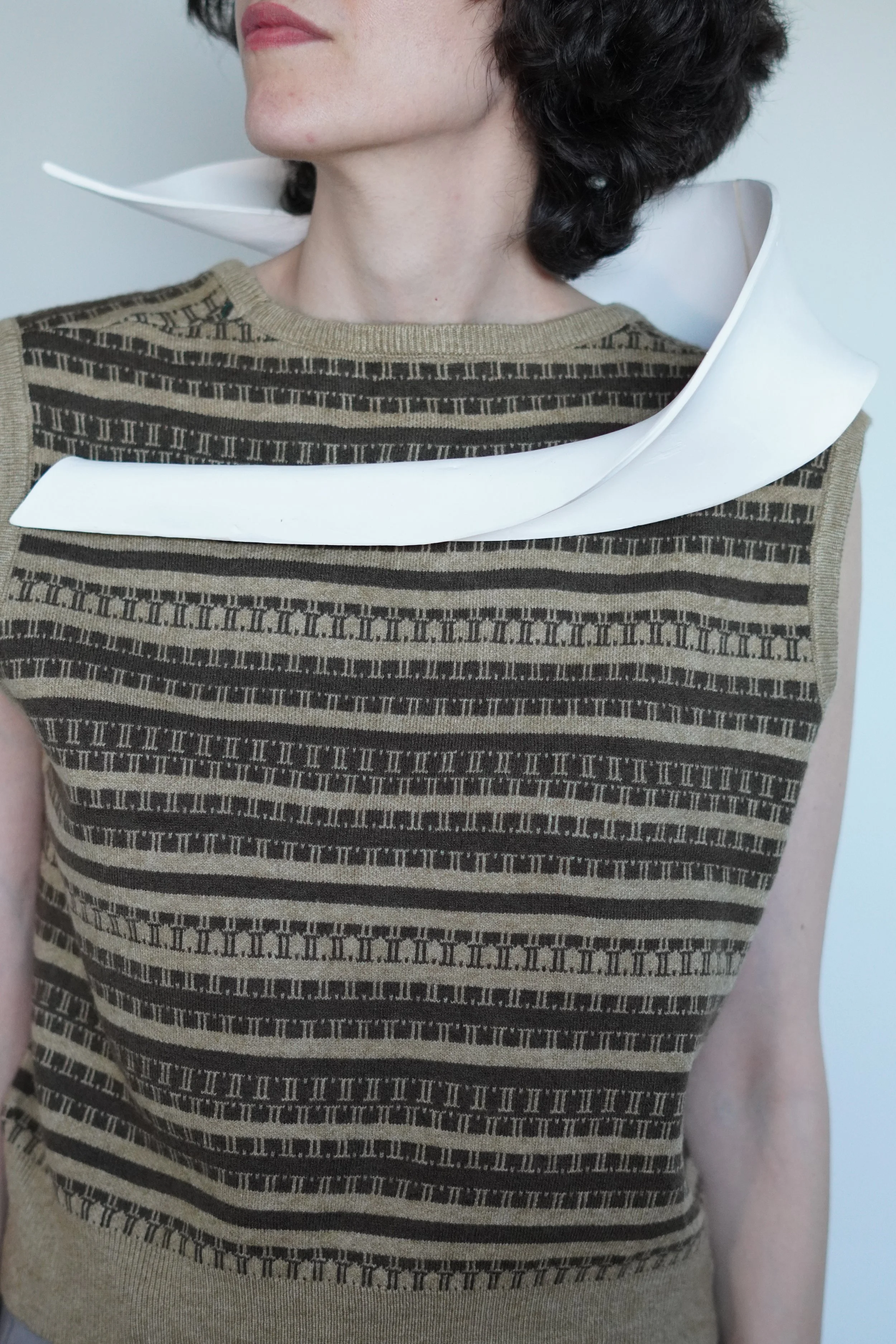 The Woodskin collection is inspired by the naturally peeling layers of tree trunks—left undisturbed as they settle into their final forms. These shapes emerge through multi-phase interactions between the wood’s boundary layers and both internal and external forces, resulting in twisted, stretched, and bent surfaces with distinctive character. This process mirrors the relationship between nature’s transformation and the human body—a living, breathing context. In this surreal landscape, the sculptural pieces inspired by woodskin find new meaning. They blur the boundary between object and body, becoming wearable extensions of nature’s evolving form. The delicate, expressive nature of these woodskins led to a deeper exploration through sketching and modeling, allowing for a more intimate appreciation of the uniqueness in nature’s transformations.
