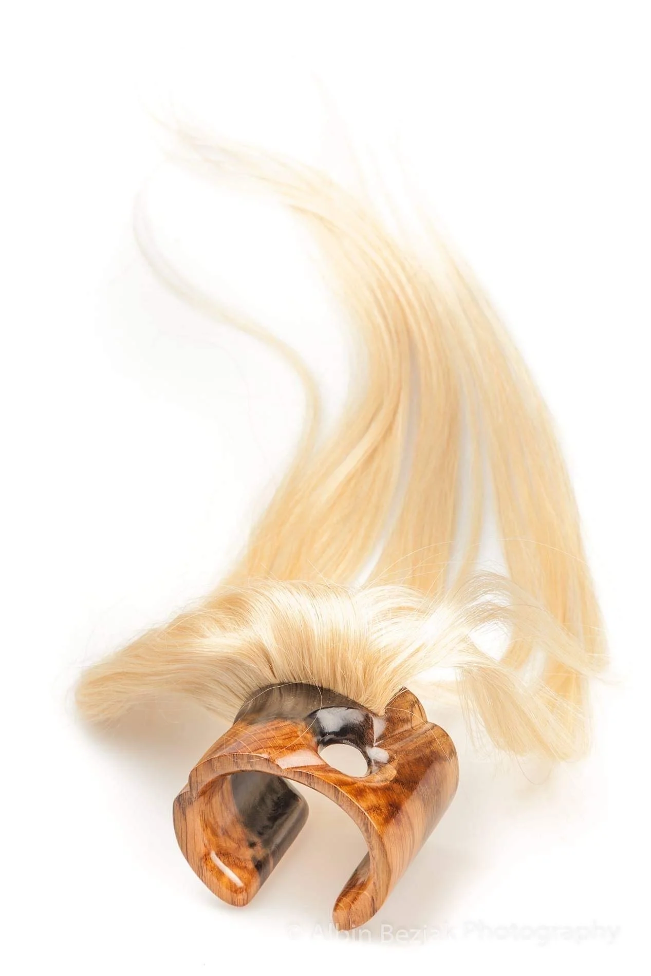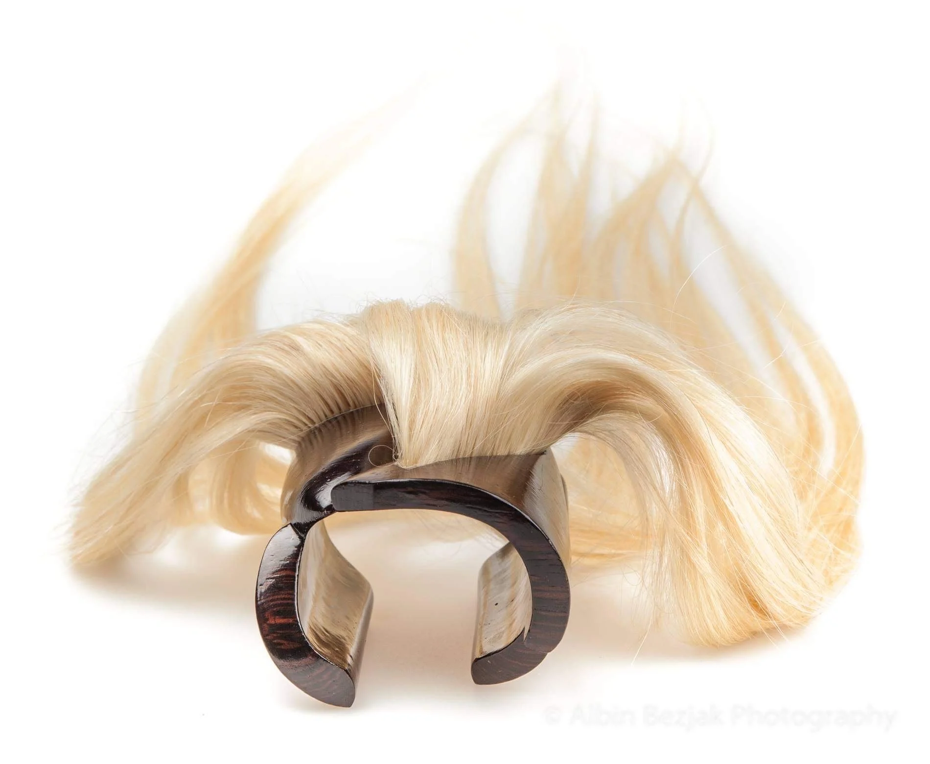These bracelets are unique artistic creations that combine tradition and modernity into an extremely attractive and original design. The hand-carved details that adorn each bracelet testify to the perfect mastery of the art of material processing, while the presence of strands of hair adds a mysterious and almost ethereal element. The hair woven into the bracelets creates a contrast between strength and softness, giving the piece a distinctly personal touch. When worn, the bracelet seems to live its own life, as if it is ready to move and change with every movement of the wearer. With their size and unusual appearance, these bracelets are not just a fashion accessory, but a true work of art that connects the past, present and future in one recognizable form.